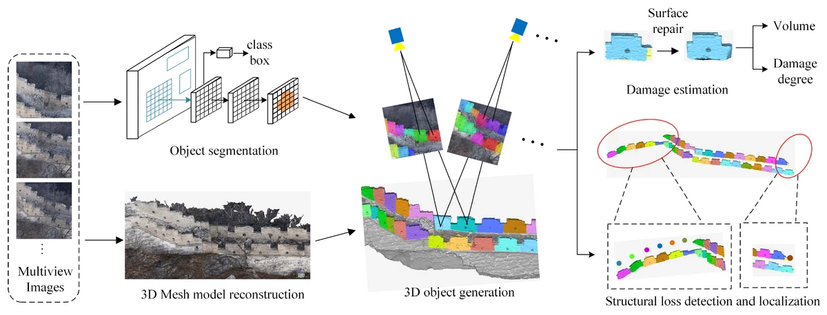 - a mesh denoising method to remedy the geometric deformation and apply texture mapping to correct the distortion.